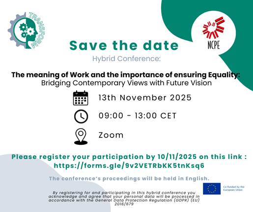 Jednocześnie pragniemy zaprosić wszystkie chętne osoby na bezpłatny panel dyskusyjny online „The meaning of Work and the importance of ensuring Equality” organizowany przez agencję rządową z Malty: National Commission for the Promotion of Equality for Men and Women (NCPE) w ramach projektu „Przyszłość siły roboczej: Przyjmowanie zmian, wyzwań i możliwości”, dofinansowanego przez Unię Europejską (Program CERV, nr projektu: 101146985).