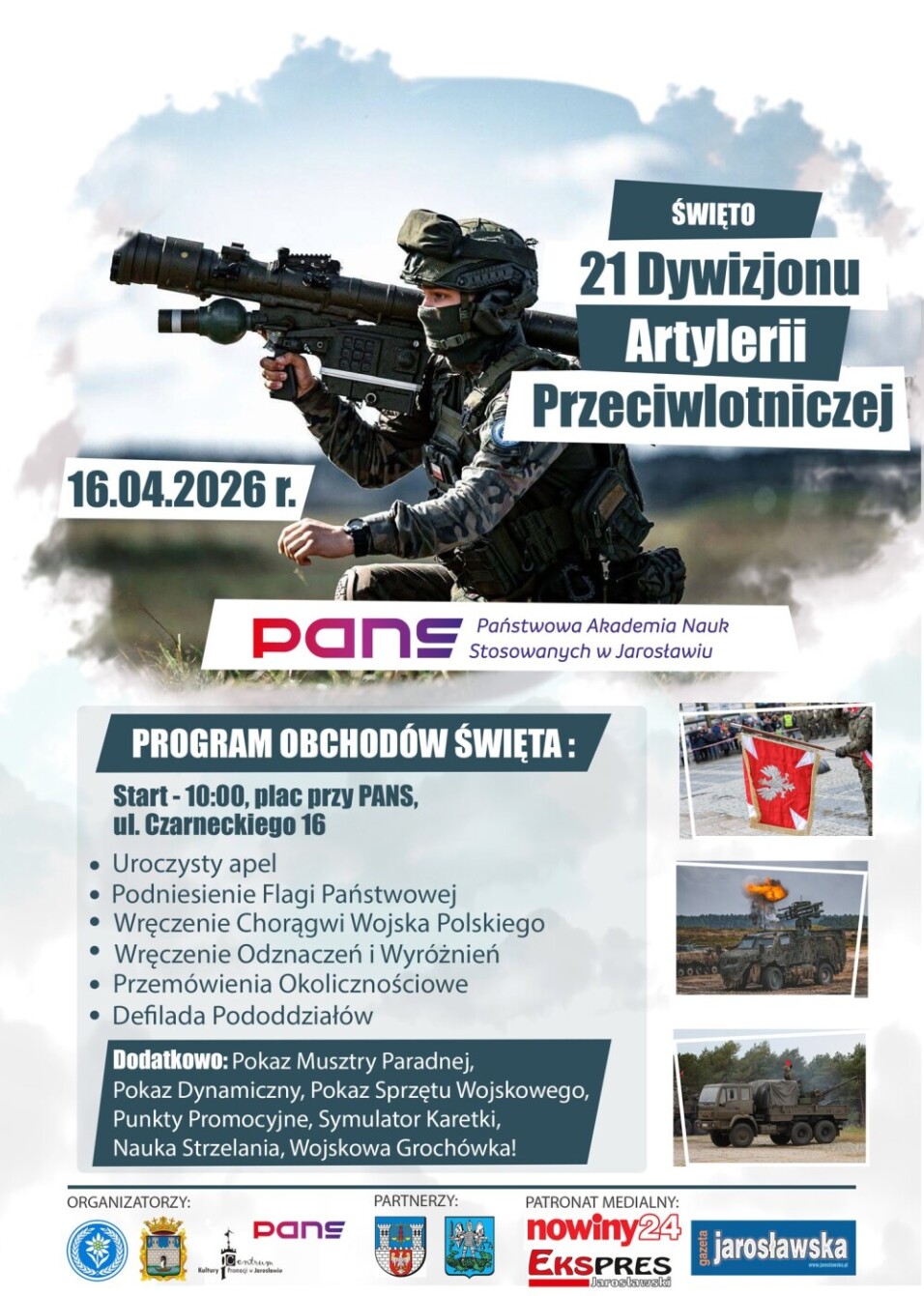 Już 16 kwietnia br. o godzinie 10:00 zapraszamy wszystkich mieszkańców oraz gości na Święto 21. Dywizjonu Artylerii Przeciwlotniczej, które odbędzie się na placu przy Państwowej Akademii Nauk Stosowanych w Jarosławiu (ul. Czarneckiego 16).