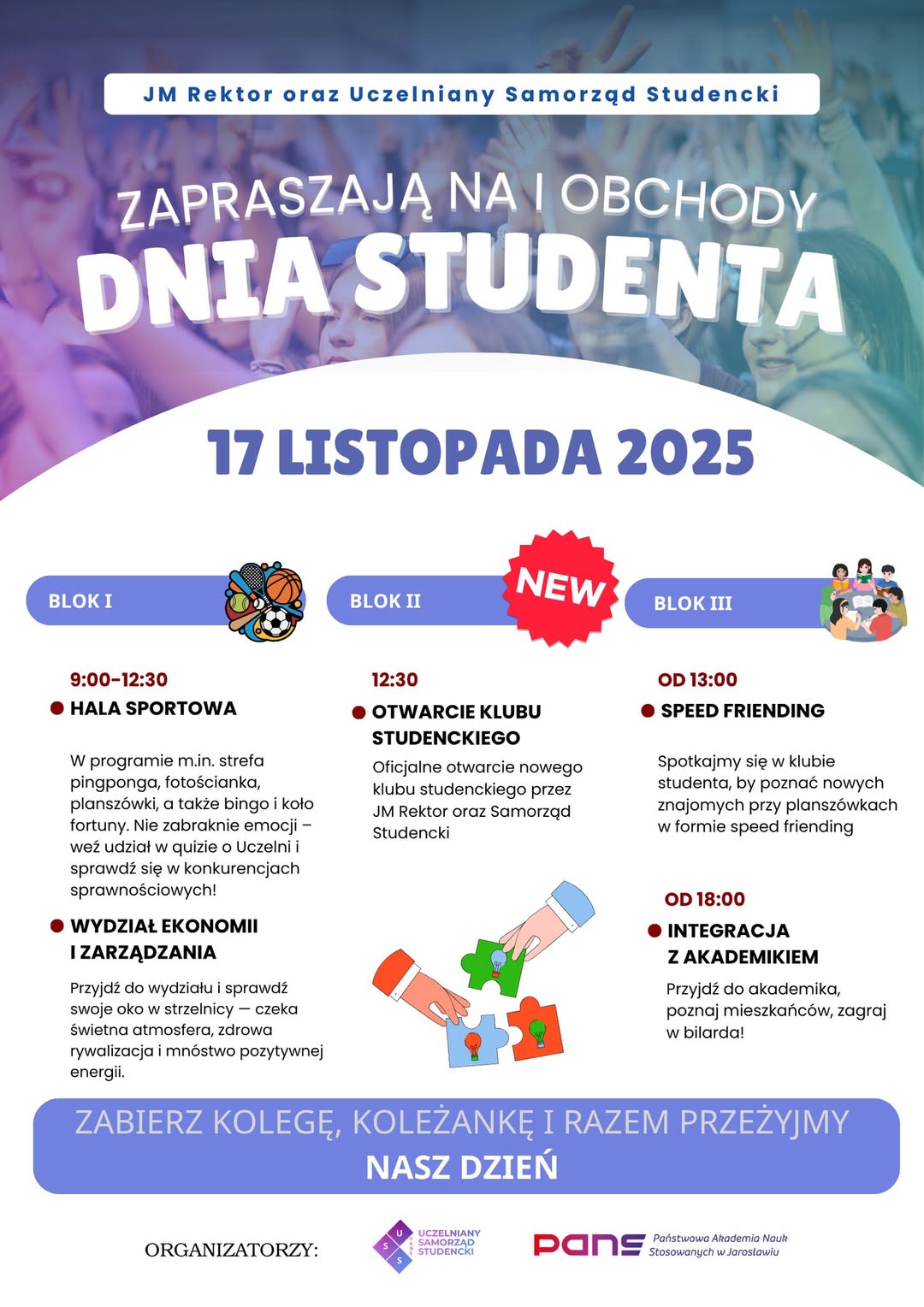 JM Rektor oraz Uczelniany Samorząd Studencki PANS w Jarosławiu zapraszają do wspólnej zabawy