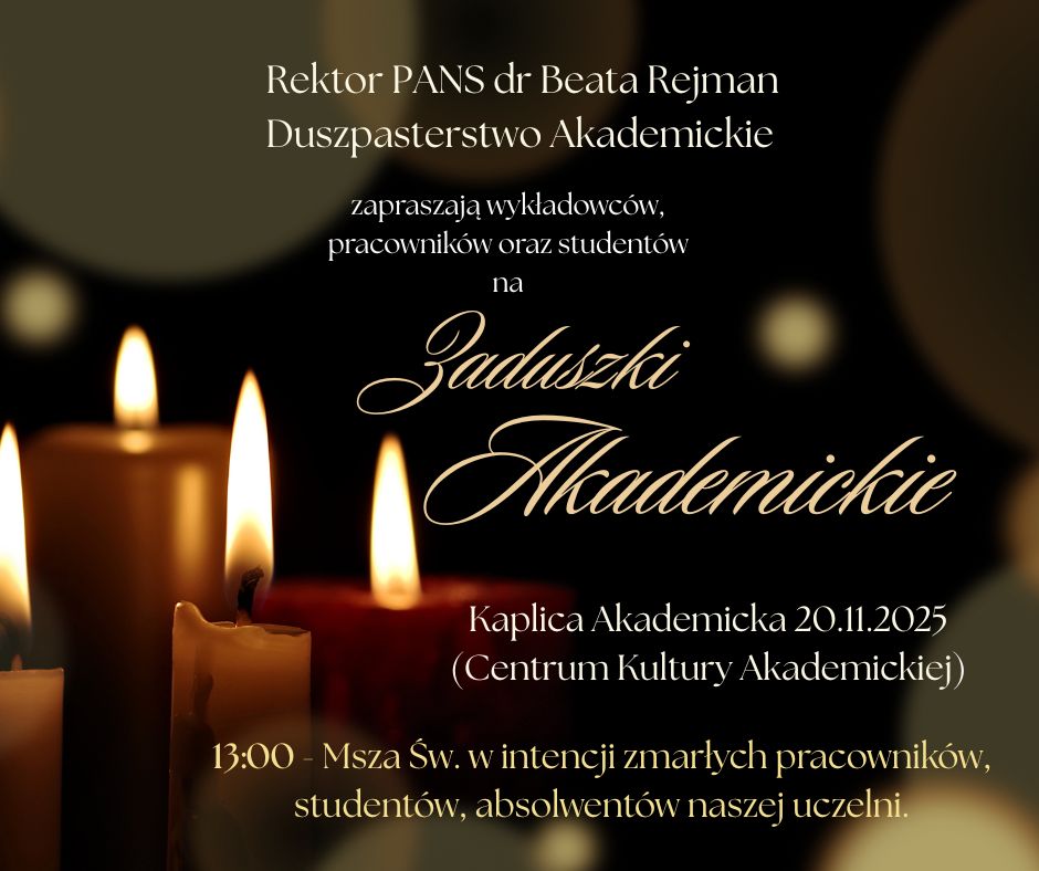 Zaduszki Akademickie Początek 20 listopada 2025, czwartek 13:00 Koniec 20 listopada 2025, czwartek 14:00 Adres Kaplica Akademicka Udostępnij: